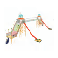 30.00m,橋面凈寬1.2m。主纜采用公稱直徑為單根中36. 0mm、橋面可同時承載50余人、兩側設置護欄網,基礎采用C25商砼。主體立柱采用219國標圓管、斜撐140國標焊管、玻璃采用國標認證的3C玻璃厚度為8+0.76+8+0.76+8螺旋滑梯為韓國進口注塑pc滑梯,頂部采用的是高端拉膜頂、爬網采用的是手工編制綿綸繩網。