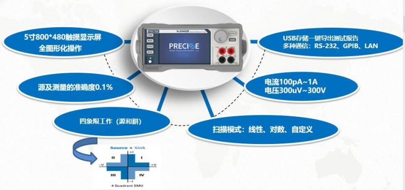 雙極性電源數字源表直流3A國產源表認準普賽斯儀表,國產自主研發,相比2400,B2901進口源表,測量范圍更廣,電壓高300V,電流低至30pA;可進行自我限制,避免因過充而造成的對測試器件的損害。