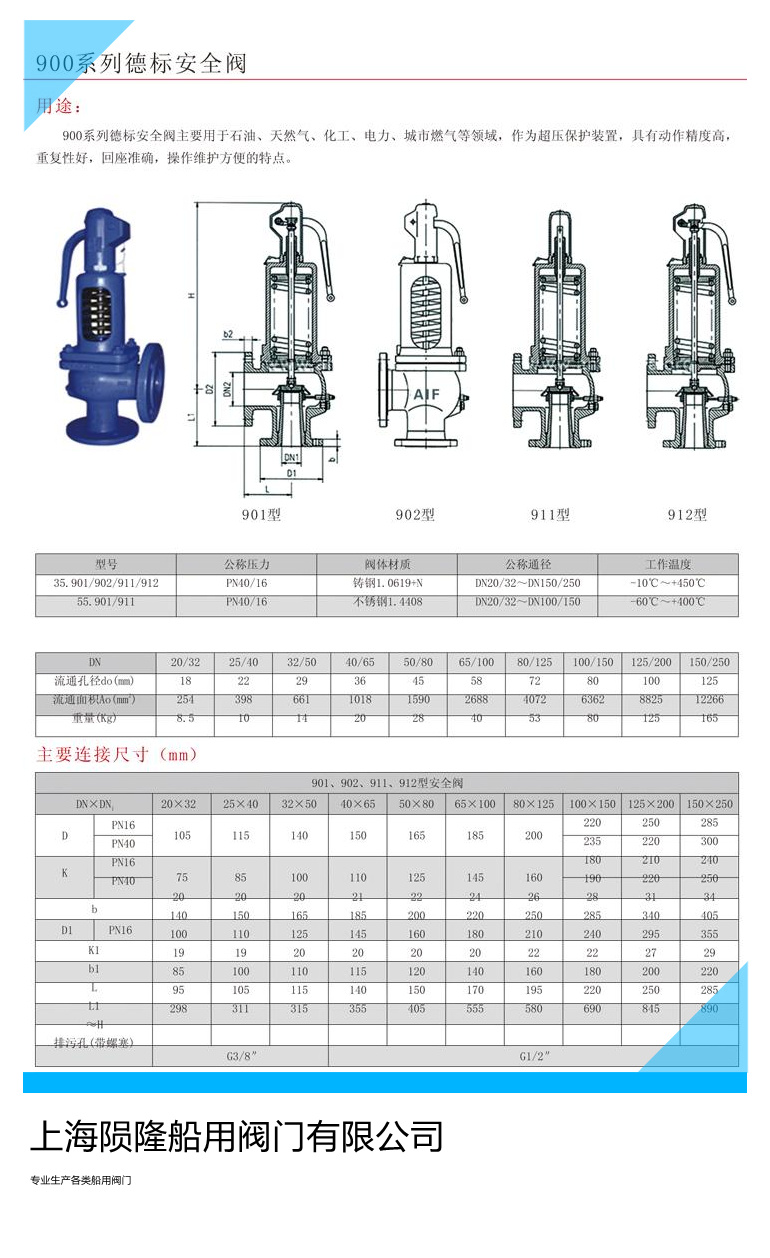 適用介質:淡水、海水、t≤225℃的蒸汽