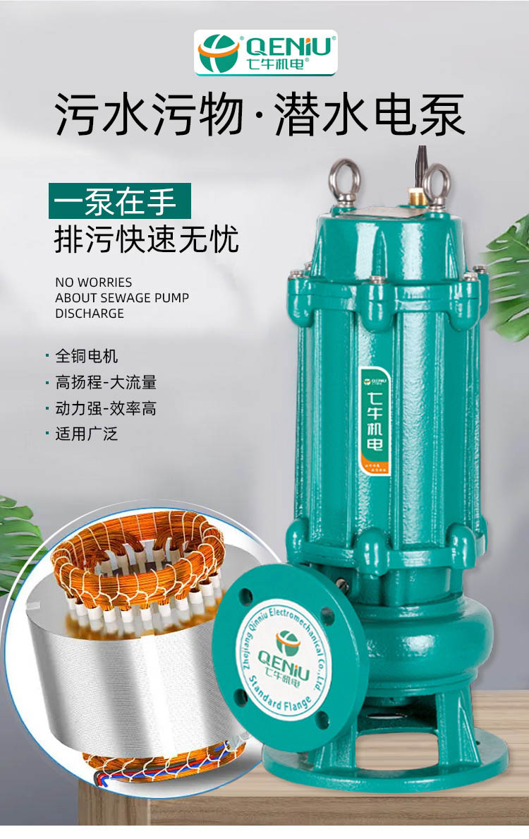 七牛 WQ系列 排污泵切割式抽糞污水泵家用220v泥漿泵38