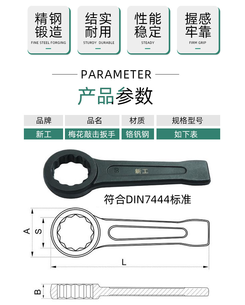 • 新工工具 梅花敲擊扳手 單頭直柄扳手