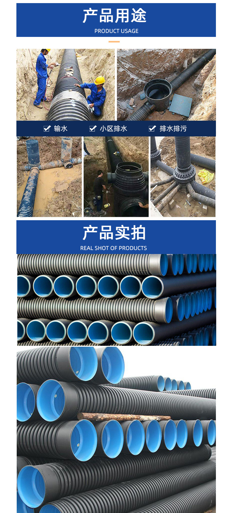 PE雙壁波紋管高密度聚乙烯螺旋排污管分流下水道黑色市