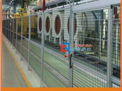 鋁合金邊框護欄網(蘇州龍橋訂制工作臺防護網 工廠流水線防掉落圍欄鋁合金車間隔離網 大門)特點