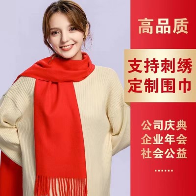 大紅色仿羊絨圍巾  年會聚會不可或缺,百搭純色流蘇圍巾  中國紅圍巾訂制款式適合多種場合   企業年會、文藝演出、同學聚會、公益活動、周年慶典、商務會議等