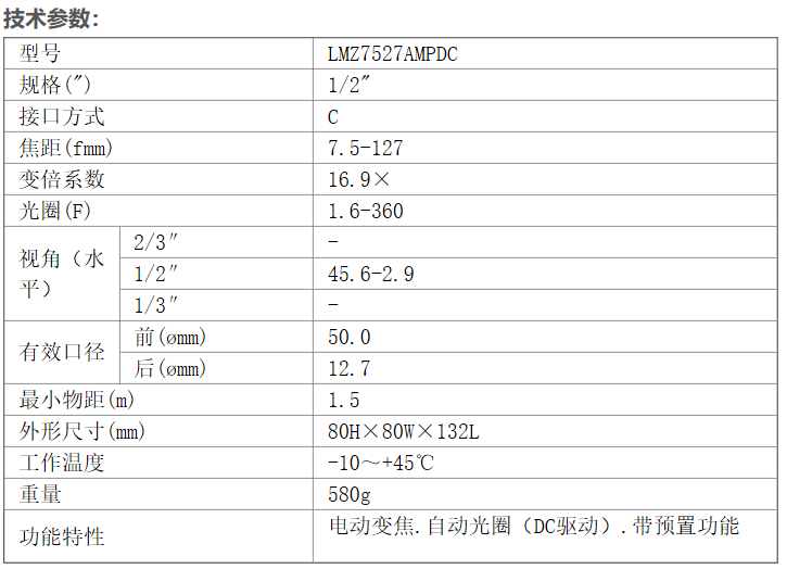 • KOWA127mm自動光圈LMZ7527AMPDC透霧攝像鏡頭