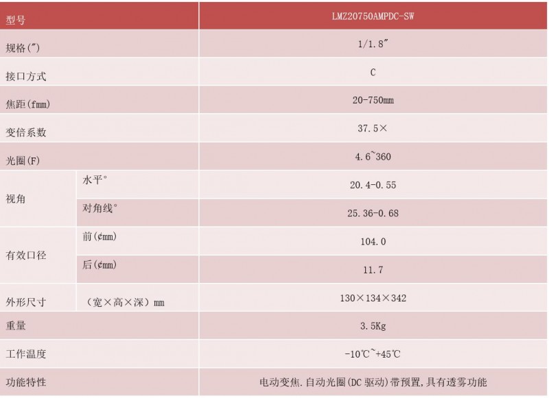更新信息 快采購網供應商深圳森木光學科技有限公司供應KOWA750mm自動光圈安防監控透霧攝像鏡頭LMZ20750AMPDC-SW2,為您提供詳細的產品報價、參數、圖片等商品信息,本產品于2025-09-26 15:57更新,主要更新內容為:產品類別、產品參數、產品價格、產品圖片等信息。如需進一步了解KOWA750mm自動光圈安防監控透霧攝像鏡頭LMZ20750AMPDC-SW2詳細信息,請與廠家直接聯系,并說明是在快采購網看到這條商機的。