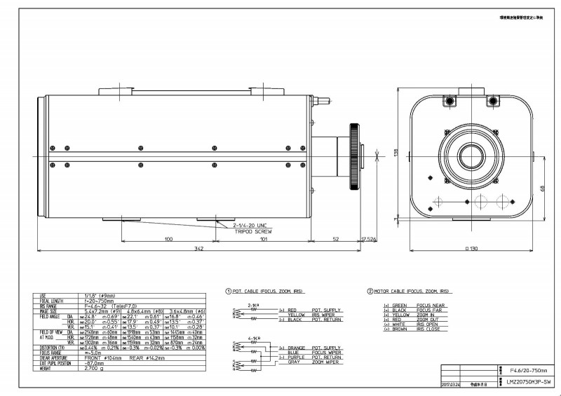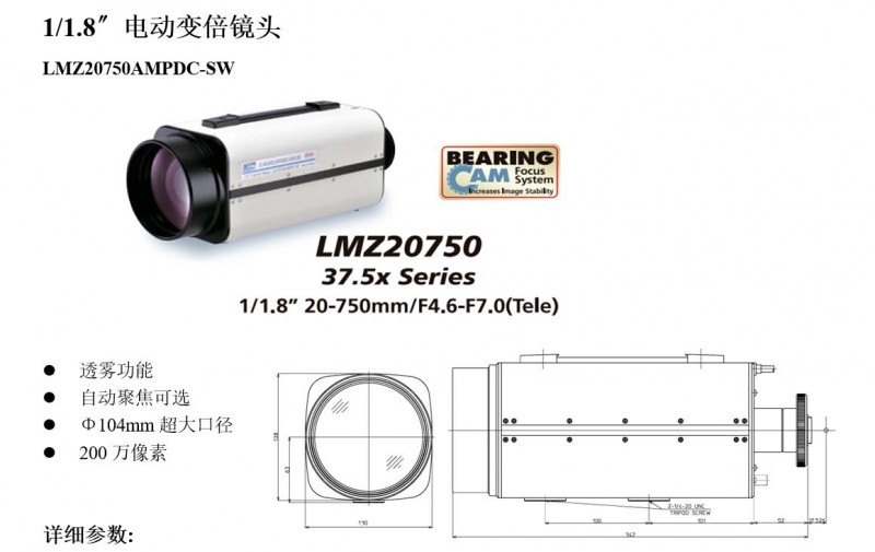 • KOWA750mm自動光圈安防監控透霧攝像鏡頭LMZ20750AMPDC