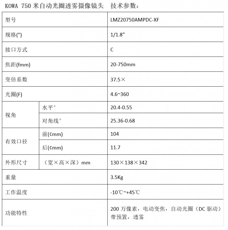 KOWA750mm自動光圈安防監控透霧攝像鏡頭LMZ20750AMPDC-XF