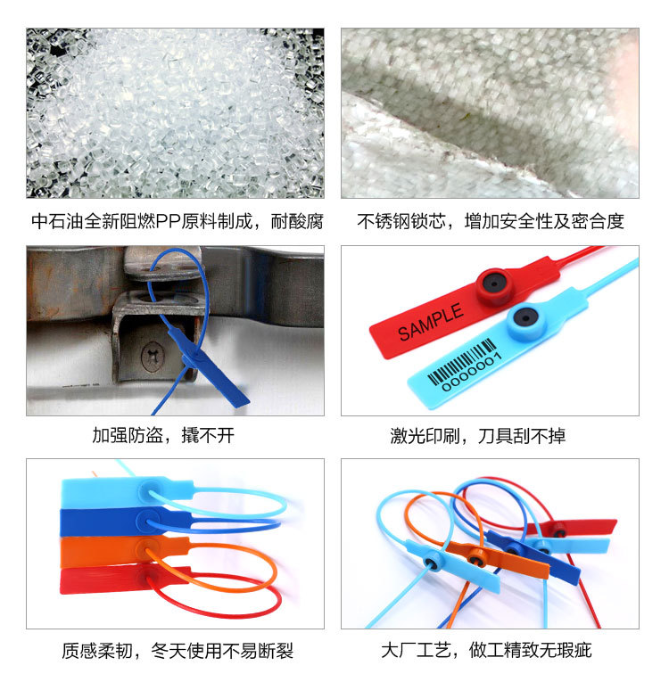 塑料封條制作工藝:封條采用PP塑料封條一次注塑成型,封條內夾有鋼片,產品在零下45度,零上50度不變型,表面采用沖壓或激光打標志、流水號、條碼,鎖桿為2*5扁桿,施封塑料封條時隨意調節(jié)抽緊,顏色可制成紅、蘭、綠、黃,也可根據(jù)用戶要求制作成其他顏色等。拉力可達F≥60KG。