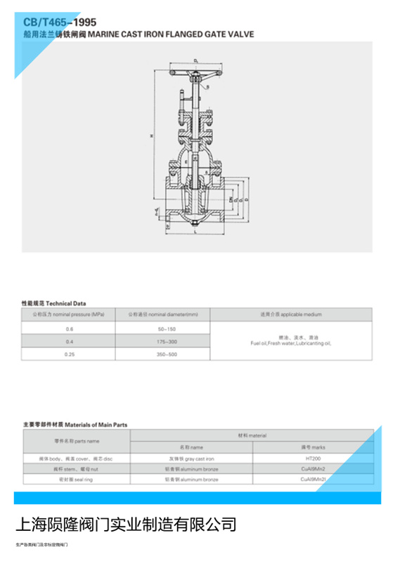 船用法蘭鑄鐵閘閥CB/T465-1966、CB/T465-1995、CBM1091-81