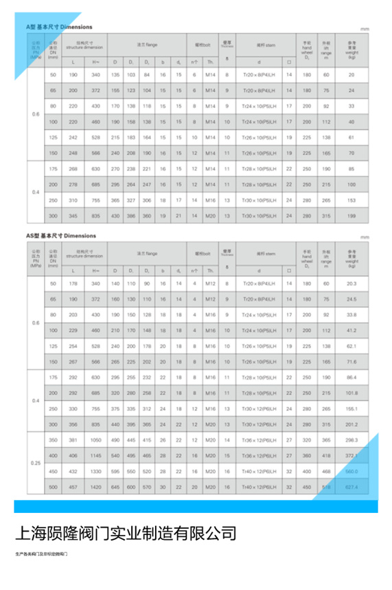 法蘭連接標準:A型按照GB/T569-65,AS按照GB2501-89的閘閥