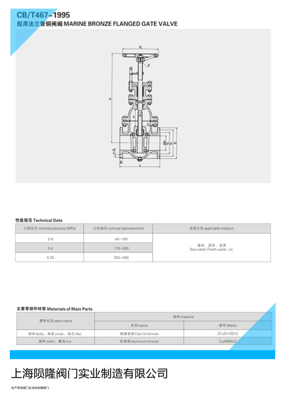 船用 CB/T467-1995 法蘭青銅閘閥 帶船檢證書