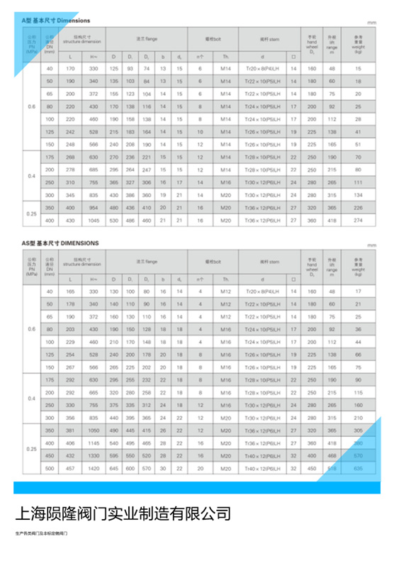 法蘭連接標準:A型按照GB/T569-65,AS按照GB2501-89的閘閥