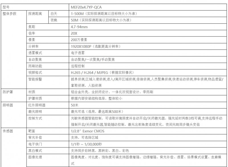• 500M旋轉車載MEF53x6.7YP-QCA激光夜視云臺監控攝像機