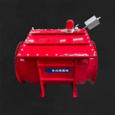 單向隔爆閥正常用于除塵器或旋風分離的入口管道上,是一種簡單、經濟可-靠的的隔爆產品,主要用來隔斷設-備內部暴炸后產生的火焰和沖擊波傳到上游的管道和設備。在操作過程中,單向隔爆閥的閥瓣由管道內正常工作的氣流打開或者處于常開狀態。在被受保護的設備內部發生暴炸的情況下,隔爆閥的閥瓣受沖擊波的沖擊而關閉。
